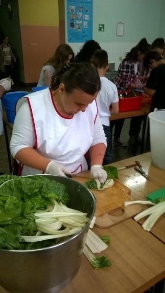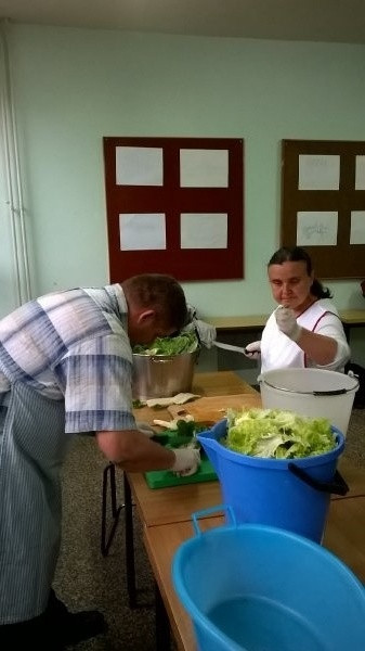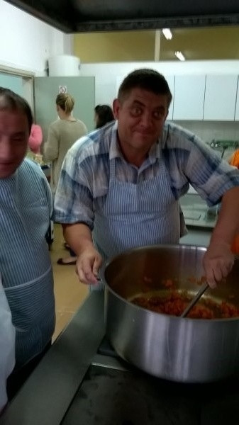 Na radionici zdrave prehrane sudionici su kuhali zdrave obroke koristeći povrće i nove, manje poznate začine. Kristina Đukić, Zdravko Jurčić i Rajačić Dragan pripremali su povrće za kuhanje u woku.